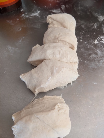 8. Divide the dough in 6 equal pieces, or more if you like smaller rolls.