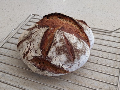 Makes: 1 small loaf | Preparation: 20 min plus a few times folding | Proving: 16-20 hours | Cooking: 40-45 minutes
