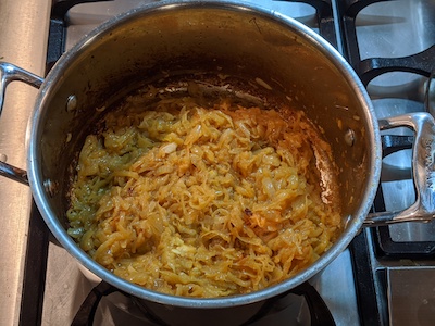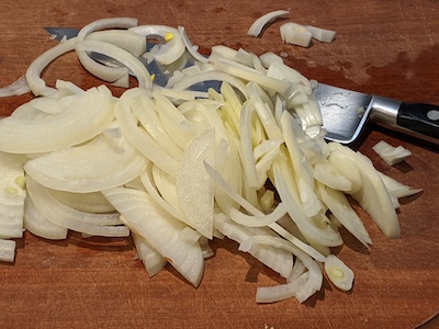 3. Add the sliced onions, cover and cook for about 20 minutes, stirring from time to time to make sure the onions cook evenly and don’t burn. With caramelising onions, patience is king!