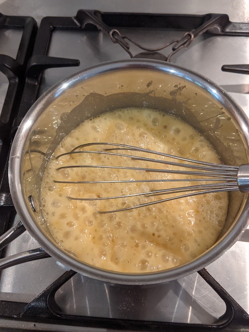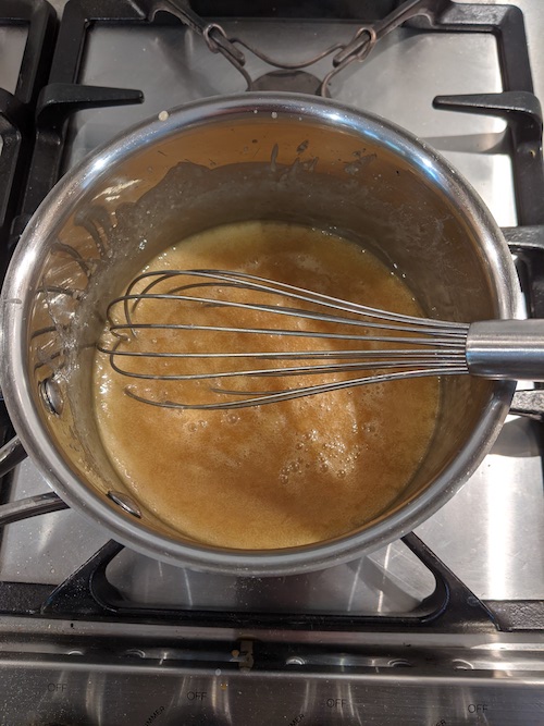 - Combine all ingredients in a heavy based saucepan and simmer over low heat, whisking constantly for about 5 minutes or until thickened. Keep in mind that the sauce will thicken when it cools.