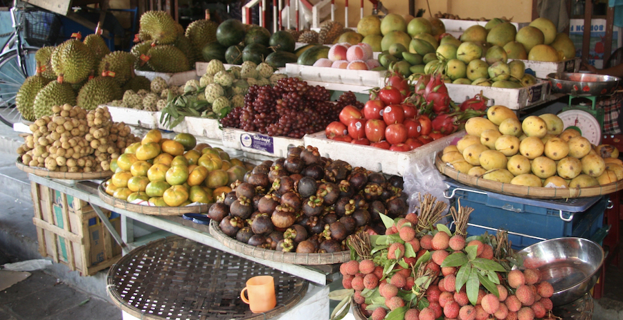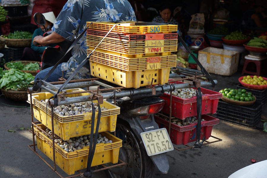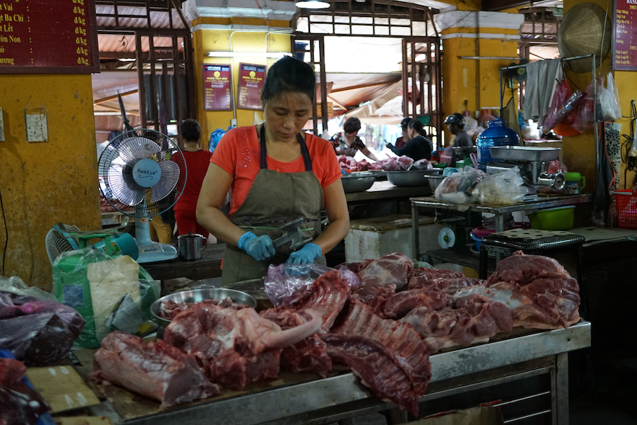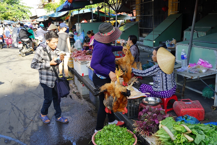 The Hoi An market is divided into 3 main sections, a covered market for seafood, meat and other fresh produce, a street section, and the market hall.