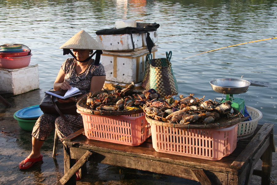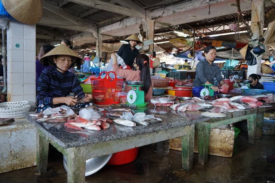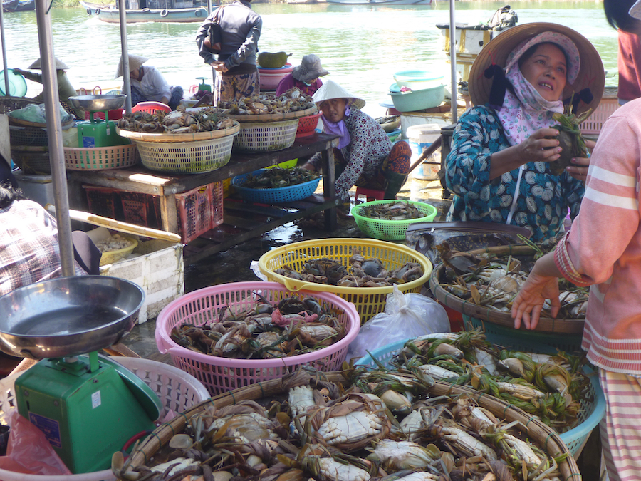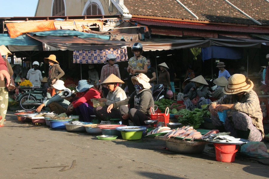Central Markets, Fish and Meat Markets settled along the Thu Bon River in the Unesco Heritage town of Hoi An. A fascinating place to visit for an authentic experience of fresh produce sales, straight from the farmers.