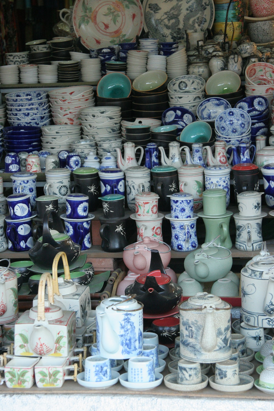The outer area of the market hall is dedicated to some larger shops selling crockery, baskets and other household items. Over the few years that we have visited Vietnam we have collected a beautiful dining set.